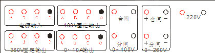 2.技術(shù)參數(shù)中6–7項(xiàng)不受接觸器控制,只要總電源開關(guān)閉合,即可輸出單相AC220V輸出(固定值)、三相AC380V輸出(固定值)。