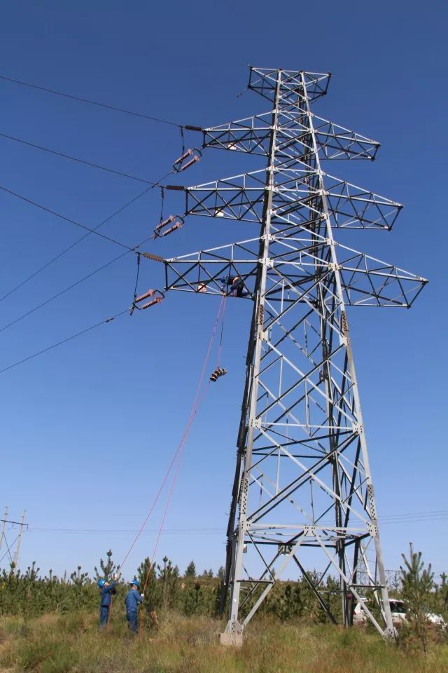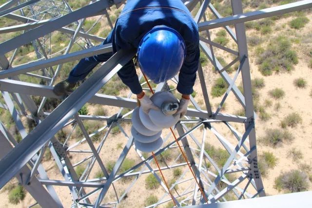 塔上作業(yè)人員用絕緣鉤掛住實(shí)驗(yàn)絕緣子